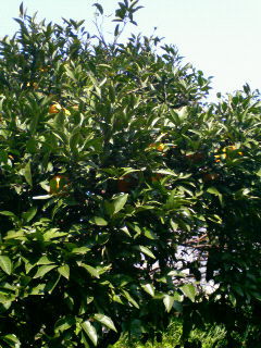 写真は散歩の途中の柑橘系の木。何の木だろ?